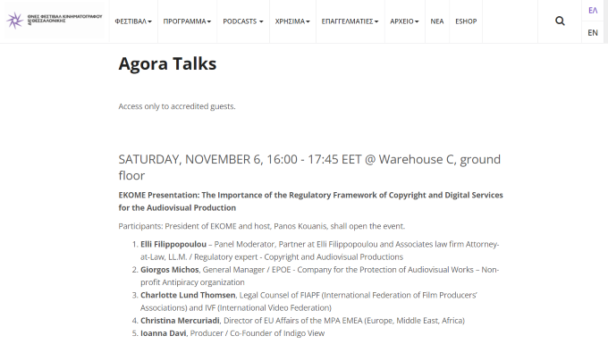 Elli Filippopoulou participated in the legislative elaboration of the draft law transposing the DSM Directive in Greek legislation, representing the AV sector coalition before the Greek Parliament.